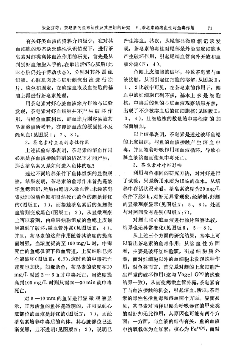 茶皂素魚毒活性及其應(yīng)用的研究—茶皂素的溶血與魚毒作用