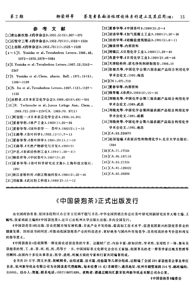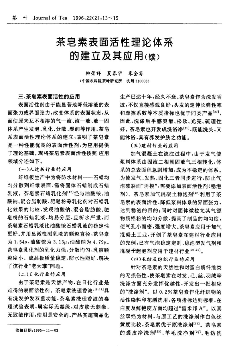 茶皂素表面活性理論體系的建立及其應(yīng)用(續(xù))
